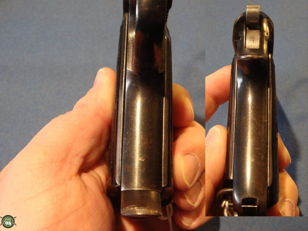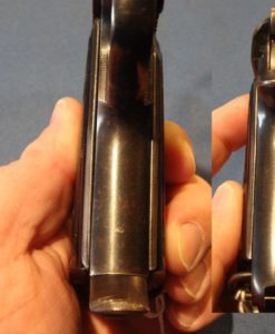 IN 97% EXCELLENT ORIGINAL CONDITION, WE HAVE A NICE EXAMPLE OF THE 1934 BERETTA PIOSTOL IN .380 CALIBER. THIS ONE WAS MADE IN 1942 AND HAS THE STANDARD CROWN/RE ITALIAN ARMY ACCEPTANCE MARK. THIS IS ONE OF THE BEST LOVED OF THE WW2 PISTOLS, DUE TO ITS SMALL SIZE AND .380 CHAMBERING. THEY ARE EXTREMELY WELL MADE AND FINISHED. THIS EXAMPLE IS ALL MATHCING WITH AN EXCELLENT BORE. THE SLIDE IS NOT SO PLUMMY AS YOU USUALLY SEE, MAKING FOR A VERY ATTRACTIVE PIECE. IF YOU ARE LOOKING FOR A NICE EXAMPLE FOR YOUR COLLECTION, LOOK NO FURTHER.