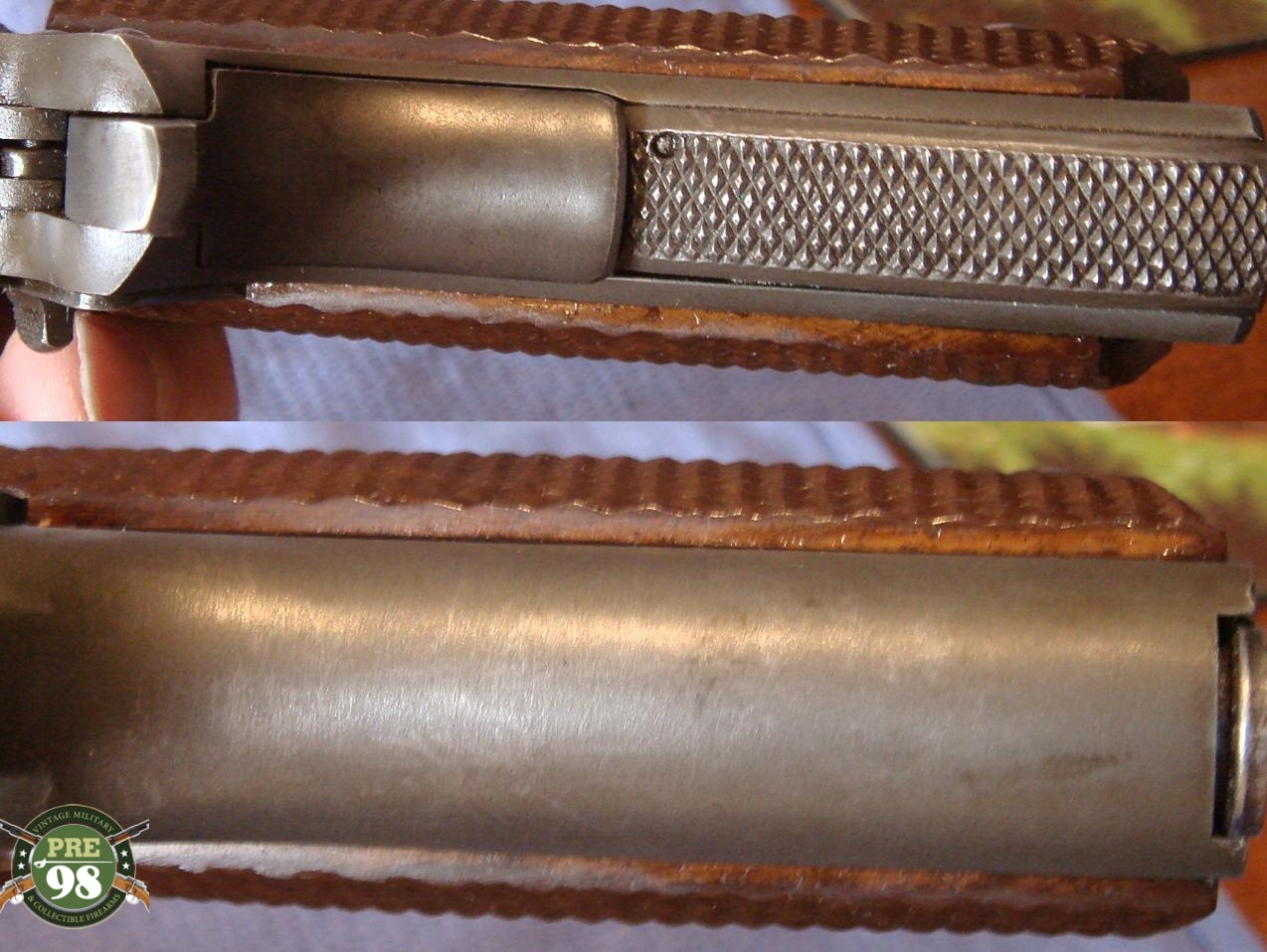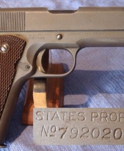 IN 98% ORIGINAL CONDITION, 100% CORRECT AS PER CLAWSON, EXACTLY THE WAY IT WAS WHEN IT WAS SHIPPED FROM COLT TO SPRINGFIELD ARMORY ON JUNE 30, 1942. THE GUN HAS THE CORRECT G MARKED P PROOFED BARREL, IT HAS THE CORRECT COLT HOLLOW BACK GRIPS, THE SLIDE IS MATCHING NUMBERED TO THE GUN, AND IT STILL IN IN THE ORIGINAL FINISH. THIS IS EVERYTHING THAT YOU WOULD EVER WANT IN A WW2 PRODUCTION COLT AND THEN SOME! IT WAS EVERYTHING THAT I COULD DO TO KEEP FROM JUST TOSSING IT IN MY SAFE. THIS IS ONE OF THE ICONIC SYMBOLS OF WW2 AND THIS IS EXACTLY AS IT CAME BACK FROM THE WAR, RIGGED OUT LIKE THIS. HOLSTER IS NUMBERED TO THE GUN. THIS IS AS STRAIGHT UP WW2 AS IT GETS!