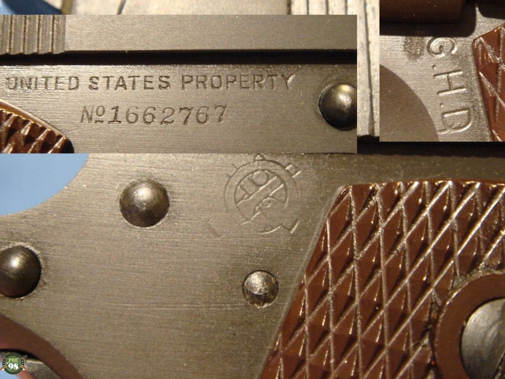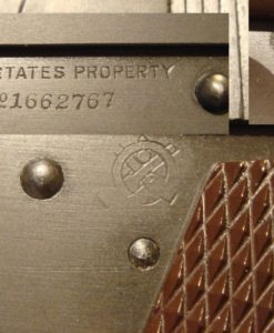 IN A STUNNING 99% MINT CRISP CONDITION, 100% CORRECT EXACTLY AS IT LEFT COLT ON OCTOBER 10, 1944, WE HAVE A SUPER EXMAPLE OF A WW2 ISSUED COLT 1911A1. THIS GUN IS CORRECT IN EVERY RESPECT AND HAS THE ORIGNAL F MARKED COLT P PROOFED BARREL. THIS IS A TEXTBOOK EXAMPLE OF A 1944 PRODCTION COLT. IT LOOKS LIKE IT WAS JUST PULLED OUT OF THE SHIPPING CARTON. GUNS LIKE THIS ARE AN INVESTORS GOLD STANDARD. WW2 1911’S ARE VERY HARD TO FIND THIS NICE.