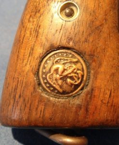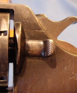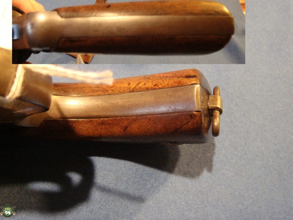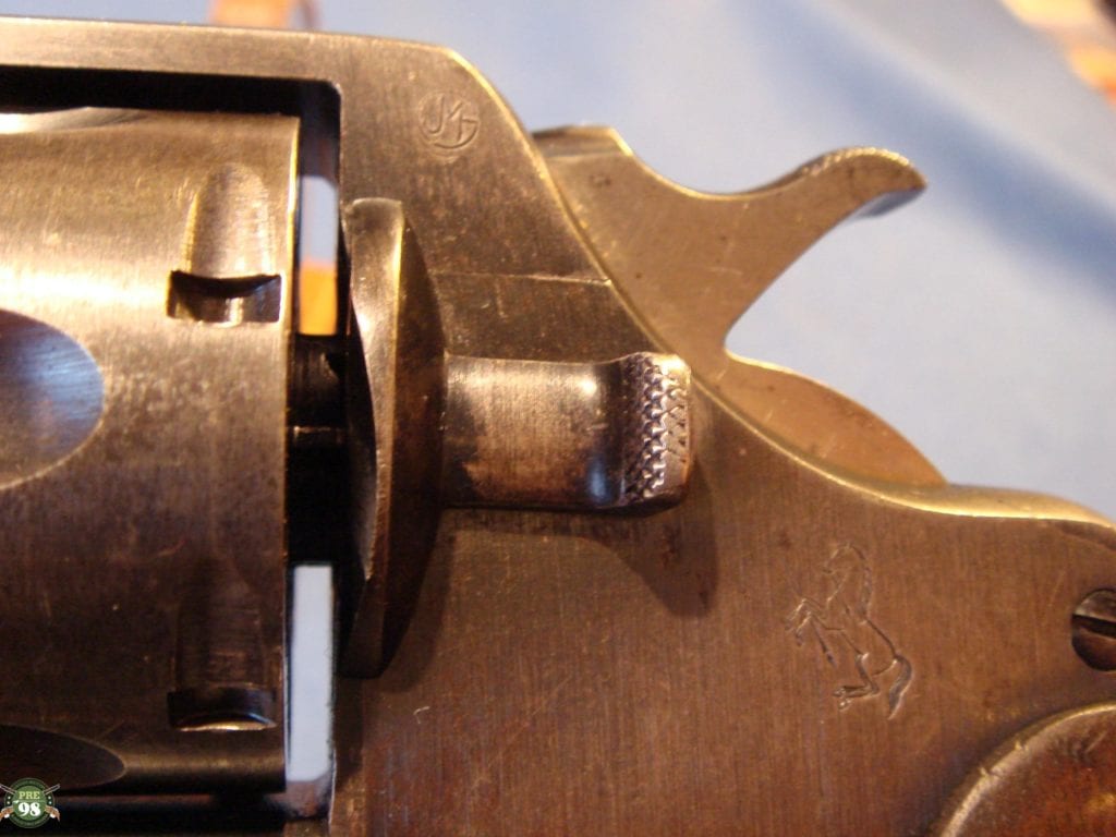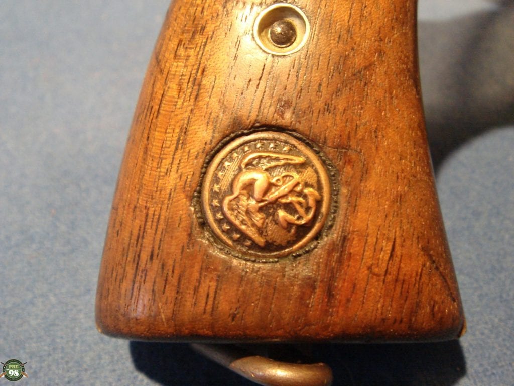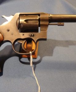 HERE IS A NICE EXAMPLE OF A US WW1 ISSUE 1917 REVOLVER IN 94% CONDITION. EXCELLENT BORE AND ALL MATCHING. THIS IS A LATE PRODUCTION EXAMPLE. THIS PISTOL IS BELIVED TO HAVE SEEN USMC USED DURING WW1 AND HAS AN EARLY USMC BUTTON INLETTED INTO ONE OF THE GRIPS. THESE PISTOLS HAVE HAD A LONG CAREER AND MANY WERE EVEN ISSUED TO US POST OFFICE EMPLOYEES. THEY USE HALF MOON CLIPS OR .45 AUTO RIM, BUT YOU CAN JUST US REGULAR OLD .45ACP ROUNDS YOU WILL JUST NEED A PENCIL TO POKE OUT THE SPENT CASES. THIS IS A VERY NICE LATE PRODUCTION EXAMPLE, WE GOT A GOOD BUY ON IT AND THIS IS A RARE CHANCE TO GET ONE OF THESE FOR LESS THAN A GRAND.