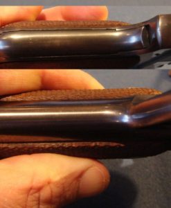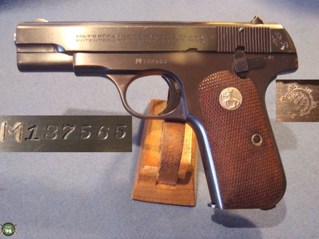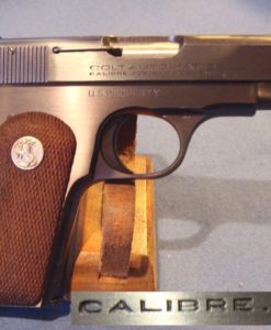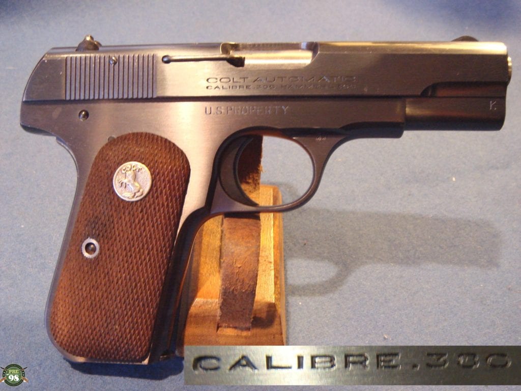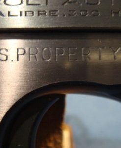 IN 98% CRISP CONDITION, WE HAVE A KILLER EXAMPLE OF A BLUED US PROPERTY MARKED 1908 COLT POCKET HAMMERLESS IN .380. THIS WAS THE STANDARD ISSUE WW2 GENERAL OFFICERS PISTOL, THIS ONE WAS LIKELY A NAVAL INTELLIGENCE PISTOL AS IT WENT BACK TO THE COLT FACTORY FOR MODIFICATION, HENCE THE “M” IN FRONT OF THE SERIAL NUMBER AND MARKED ON THE MAG. ALMOST ALL OF THE PISTOLS SO MODIFIED CAME FROM THE US NAVY. THIS PISTOLS IS SO NICE YOU WILL WONDER WHERE THE BOX IS. THESE BLUED US PROPERTY POCKET HAMMERLESS PISTOLS ARE RED HOT AND ALMOST WORTH THERE WIEGHT IN GOLD. THESE DAYS THEY ARE AMONGST THE SAFEST MOST SECURE INVESTMENTS THAT YOU CAN MAKE.