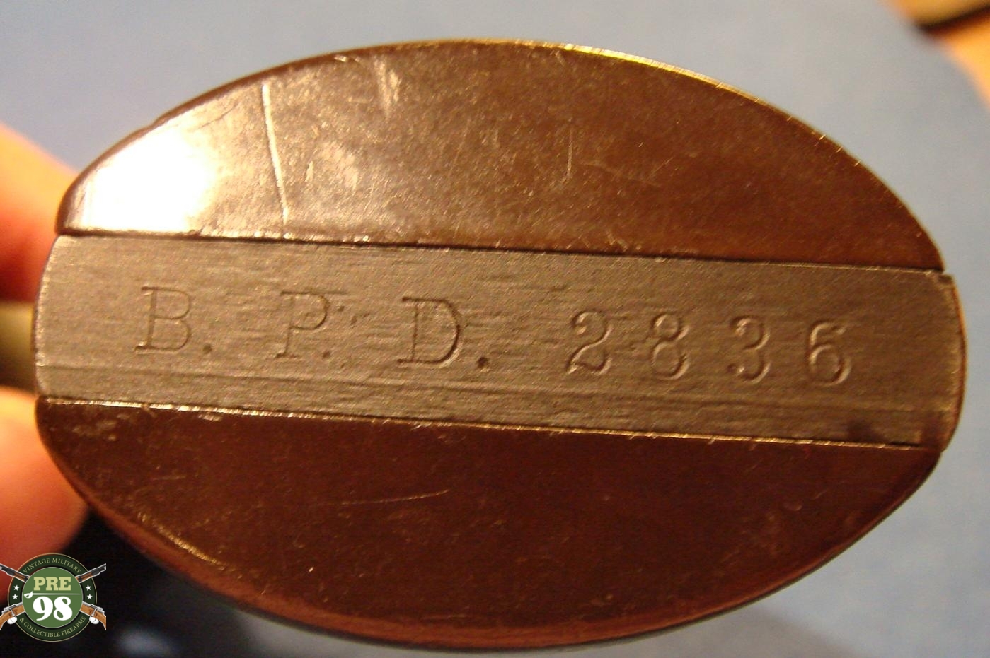 IN 97% EXCELLENT ORIGINAL CONDITION, WE HAVE A VERY INTERESTING COLT COMMNADO PISTOL. THIS GUN IS MARKED B.P.D. 2836 WHICH ACCORDING TO CHARLES PATE INDICATES THAT IS WAS SOLD TO THEM BY THE DEFENSE SERVICE CORPERATION DURING WW2. A SIMILIAR PISTOL IS NOTED IN HIS EXCELELNT BOOK. COLT COMMANDOS THAT ARE MARKED LIKE THIS ARE RARE AND HIGHLY SOUGHT AFTER BY COLLECTORS. VERY FEW GUNS WERE ISSUED TO POLICE DEPARTMENTS DURING WW2 SO THIS IS A RARE BIRD.