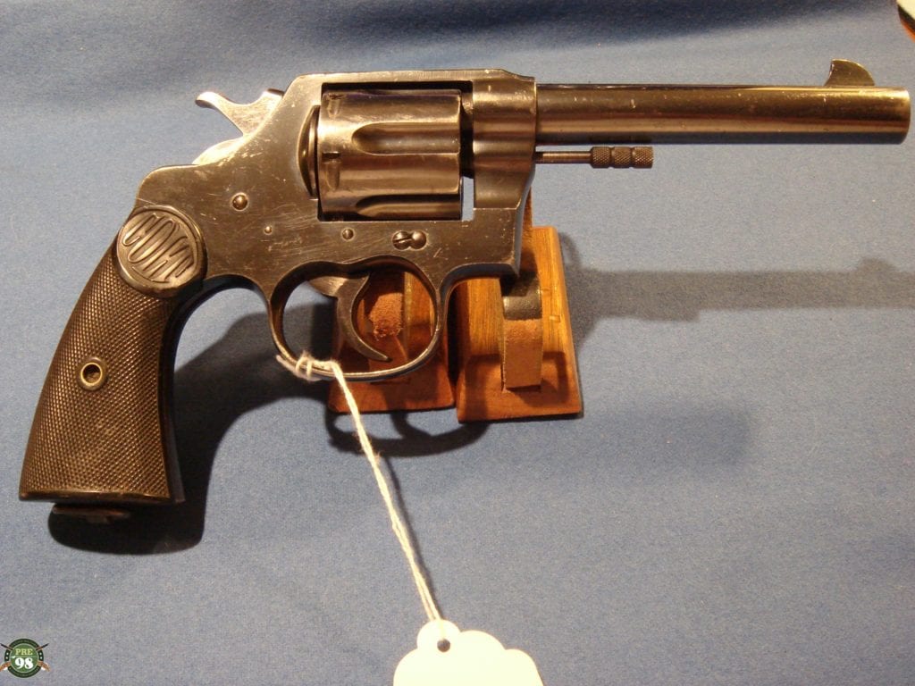 IN 96% EXCELLENT ORIGINAL CONDITION, WE HAVE A VERY CLEAN BRITISH MILITARY ISSUED COLT NEW SERIVCE REVOLVER IN .455 ELEY. THIS EXAMPLE HAS NOT BEEN REWORKED AS MANY WERE AND STILL IS IN ORIGINAL CONDTION. DURING THE STALEMATE OF THE WESTERN FRONT THESE PISTOLS WERE HIGHLY REGARDED AND TREASURED BY THOSE WHO COULD OBTAIN THEM. MAY WERE RETURNED TO THE STATES AFTER THE WAR AND RECHAMBERED FOR 45LC, BUT THIS ONE IS STILL IN THE ORIGINAL CALIBER. THIS IS A GREAT COLT AND A GREAT BRITISH MARTIAL PISTOL.