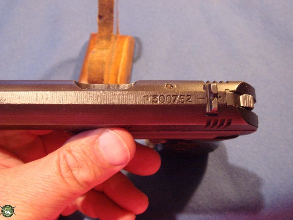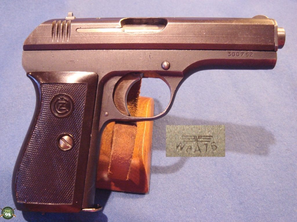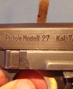IN 98% CRISP CONDITION WE HAVE A TOP EXAMPLE OF A MID WAR FNH CODED CZ27 PISTOL. I LIKE MY CZ’S WITHOUT CHIPS IN THE GRIPS AND THIS ONE DOES NOT DISSAPOINT. THIS IS ALL MATHCING WITH A MINT BORE AND IS EVERYTHING THAT YOU WOULD WANT WITH A MID WAR CZ27. IF YOU LOVE CZECH PISTOLS OR YOU JUST NEED AN EXAMPLE FOR YOUR COLLECTION THIS IS A GREAT GUN.