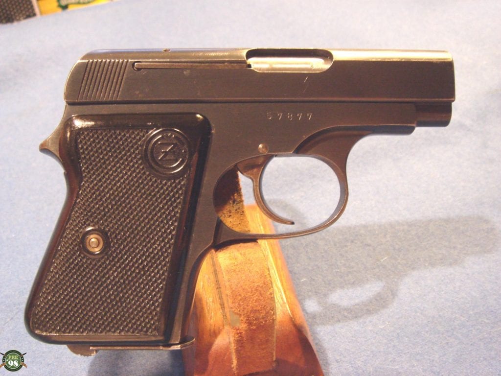 IN 96% ORIGINAL CONDITION WE HAVE A SELDOM SEEN CZ45 DOUBLE ACTION .25 AUTO. SOMETIMES CALLED THE LITTLE TOM THIS PISTOL WAS BRIEFLY IMPORTED UNTIL THE IRON CURTAIN FELL OVER CZECHKOSLOVAKIA. THIS PISTOL HAS A REPUTATION AS A COLD WAR EAST BLOCK SPIES CARRY GUN. BACK IN THE DAY THIS WAS PROBABLY A VERY HANDY THING TO HAVE IN YOUR POCKET, AND EVEN TODAY IT IS CERTAINLY BETTER THAN A ROCK.