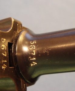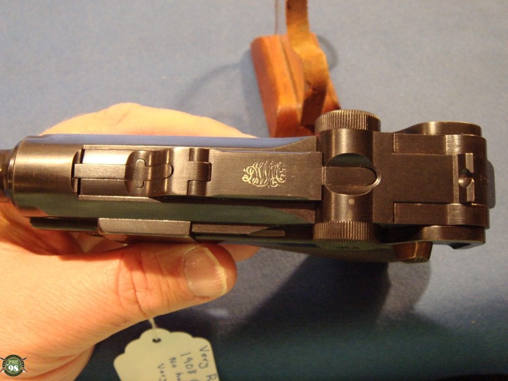 IN 97% ORIGINAL CONDITION, WE HAVE A VERY NICE EXAMPLE OF A EARLY CROWN N PROOFED 1908 COMMERICAL LUGER IN 9MM. THE GUN IS ALL MATCHING . THE BORE IS EXCELLENT AND THERE IS NO HOLD OPEN INSTALLED. THE MAG IS THE CORRECT UN-NUMBERED MAG AND THE GUN IS NUMBERED IN THE COMMERCIAL STYLE. MANY OF THESE PISTOLS WERE PRIVATELY PURCHASED BY SENIOR OFFICERS OF THE GERMAN ARMY PRIOR TO WW1. IT WAS THE CUSTOM OF THE DAY FOR OFFICERS TO PURCHASE THEIR OWN SIDE ARMS AND THIS WAS THE PISTOL THEY ALL WANTED. AS YOU WELL KNOW ANY 1908 COMMERICIAL IN THIS TOP SHAPE IS HIGHLY SOUGHT AFTER AND IS A GREAT INVESTMENT GRADE PIECE.