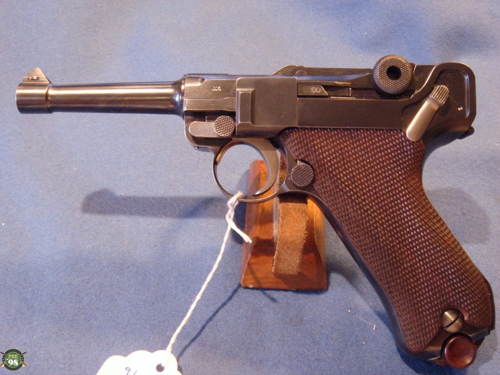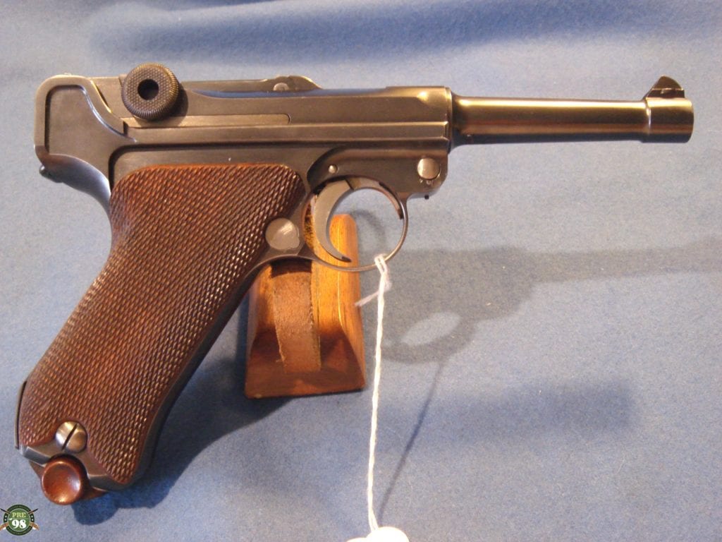 IN 98% MINT CRISP CONDITION, WE HAVE A VERY RARE AND SELDOM SEEN DWM 1914 COMMERICAL LUGER. THIS IS AT THE END OF THE RUN AND ALMOST CERTAINLY WOULD HAVE BEEN PURCHASED BY AN OFFICER AS A SIDEARM. WHOEVER HAD THIS MOST ASSURDLY DID NOT LIVE IN THE TRENCHES BECAUSE THE GUN IS PRISTINE. THIS IS A TOUGH GUN TO LOCATE AND IS A REAL FIND FOR US.
