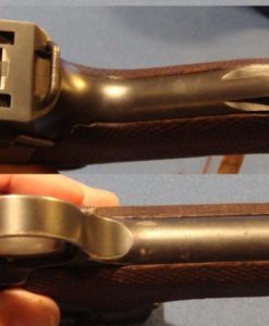 IN 90% ORIGINAL CONDITION, WE HAVE A VERY HARD TO FIND AND HIGHLY SOUGHT AFTER GERMAN WW1 1917 NAVY LUGER WITH THE 6 INCH BARREL. ALL MATCHING EXCEPT FOR THE MAGAZINE, WHICH IS A CONCENTRIC CIRCLE NAVY MAG. THE BORE IS EXCELLENT. THIS IS A VERY DECENT EXAMPLE OF A 1917 DATED GERMAN NAVY LUGER. GERMAN NAVY LUGERS HAVE ALWAY BEEN NEAR THE APEX OF HANDGUN COLLECTING, AND HAVE ALWAYS BEEN PRESTIGE PISTOLS. WHILE NOT MINT PERFECT THIS IS A GOOD SOLID EXAMPLE FOR THOSE WHO WOULD LIKE JUST ONE EXAMPLE FOR THEIR HOLDINGS.