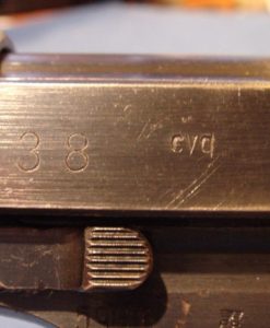 IN 95% ORIGINAL CONDITION, WE HAVE A VERY NICE ALL MATCHING NO LETTER BLOCK EARLY PRODUCTION SPREEWEERK MADE P38 PISTOL. THE FIT AND FINISH ON THIS GUN STAND OUT WELL AND IT IS A GOOD EXAMPLE OF HOW NICE A SPREEWERK GUN COULD LOOK. THE FINISH OF THESE GUNS WAS RATHER ERATIC AND WE SELDOM SEE THEM THIS NICE. THE BORE IS EXCELLENT. IN A COLLECTING WORLD WHERE SPREEWERK P38’S ARE SEEING LONG DESERVED INTEREST THESE GUNS ARE VERY HOT AND WE HAVE A LOT OF FOLKS ASKING US TO FIND SOME NICE ONES. THIS IS A GREAT EXAMPLE