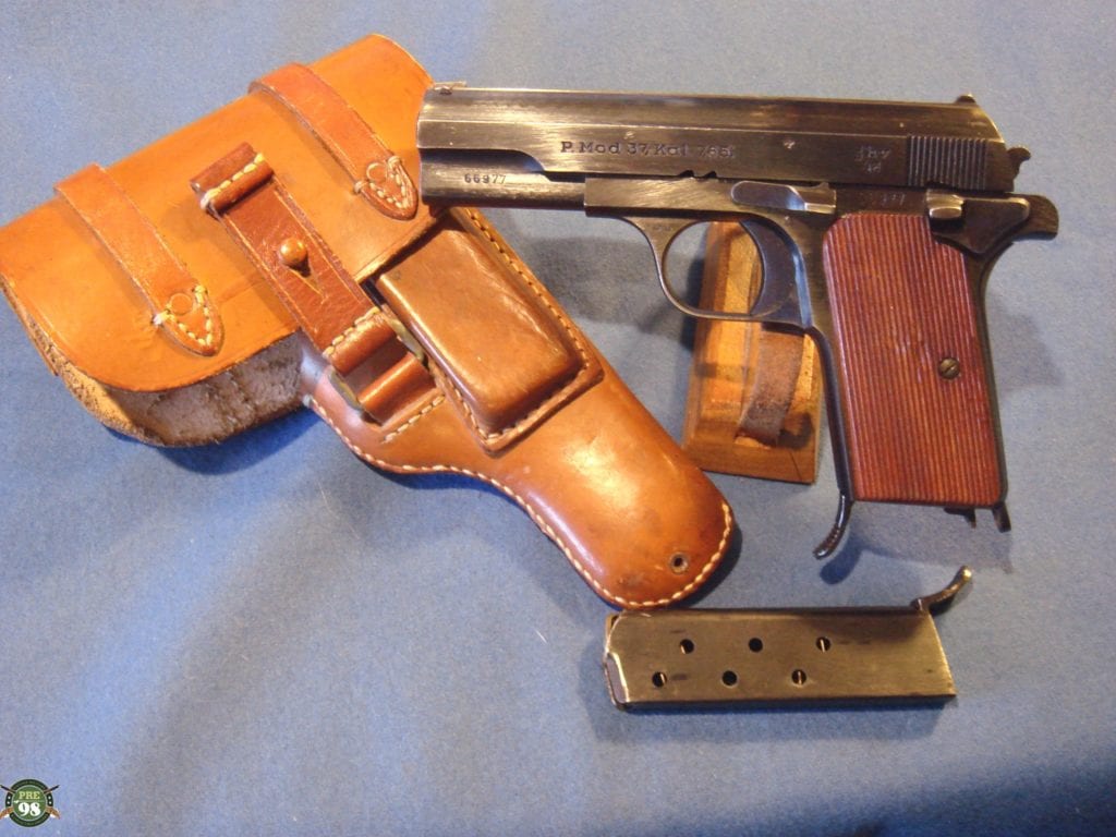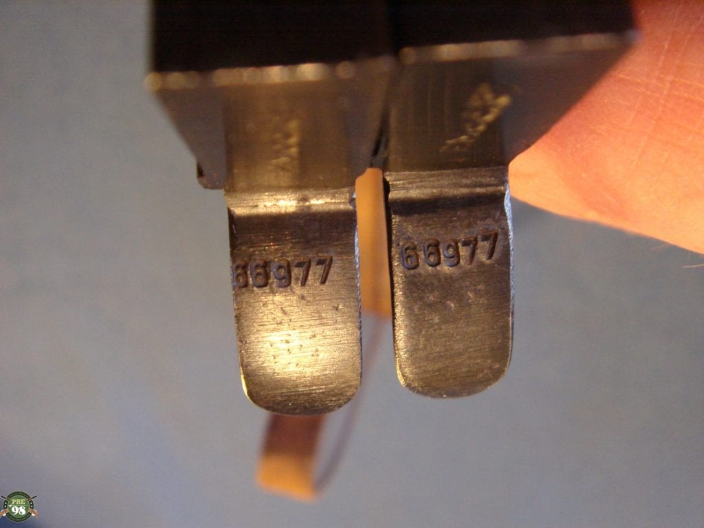 IN A VERY CRISP 98% CONDITION, WE HAVE A SUPER EXAMPLE OF AN ALL MATHCING JHV 43 FEMARU WITH THE 2 ORIGINAL MATCHING MAGS THAT IT LEFT THE FACTORY WITH. ALSO COMES WITH A LUFTWAFFE DROPPING HOLSTER IN MINT CONDITION. THIS IS AS NICE OF A FEMARU AS YOU WILL EVER SEE, THEY DO NOT GET ANY BETTER THAN THIS. THE DOUBLE MATCHING MAGS REALLY JUICE THIS UP TO A CONDIDERABLE DEGREE. YOU CAN THINK OF THIS AS THE ULITIMATE FEMARU RIG. JHYV 43 FEMS ARE REALLY HARD TO GET WITH 2 MATCHING MAGS AS THEY STOPPED NUMBERING THE MAGS TOWARD THE MIDDLE OF THE RUN.