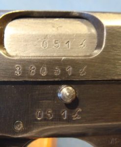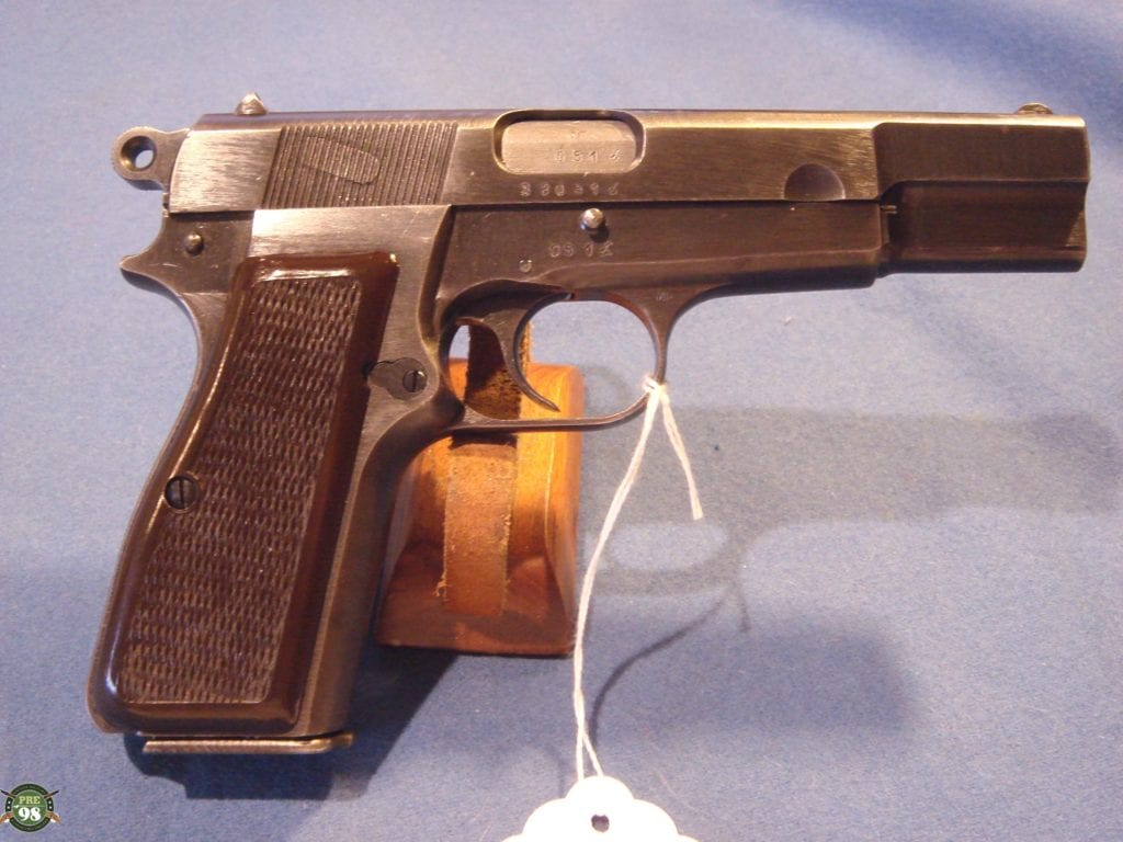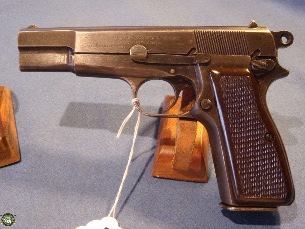 IN 96% ORIGINAL UNMESSED WITH CONDITION, WE HAVE A VERY NICE EXAMPLE OF A 1944 PROUDCTION FN HIGH POWER PROUDCUED UNDER NAZI OCCUPATION. THIS PISTOL IS VERY DESIRABLE FROM THE FACT THAT IT HAS A REALLY NICE SET OF PLASTIC GRIPS. SO OFTEN YOU SEE THESE CRACKED BUT THIS GUNS HAS A REALLY NICE SET. THE PISTOL IS ALL MATCHING WITH A MINT BORE. IT IS WAFFENAMTED WAA140. WITH A CORRECT WARTIME MAG. THIS IS A VERY CLEAN CRISP EXAMPLE OF A VERY POPULAR WW2 PISTOL