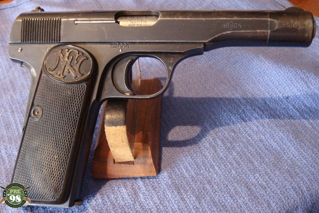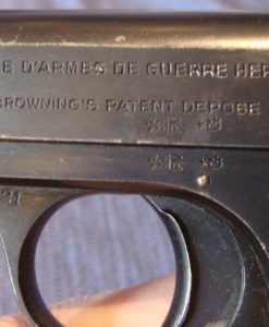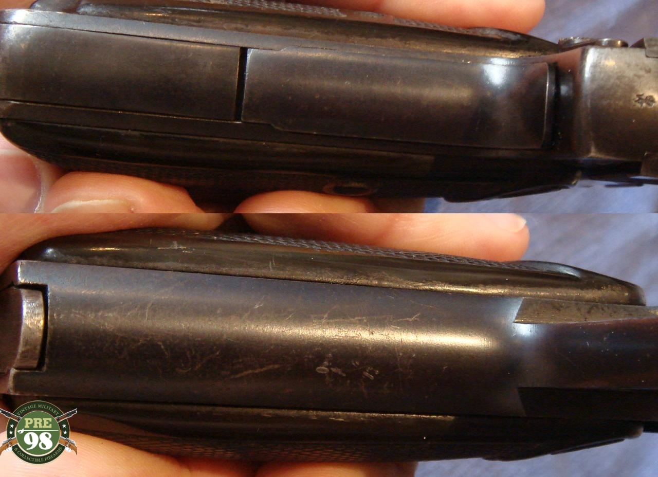 IN 95% EXCELLENT ORIGINAL CONDITION, WE HAVE A NICE EXMAPLE OF THE VERY WELL KNOWN DUTCH CONTRACT FN 1922 WITH THE CREST OF WILHELMINA. THE PISTOL IS IN .380 AND IS ALL MATHCING WITH AN EXCELLENT BORE. THIS WAS A GERMAN CAPTURE AND WAS VET BROUGHT BACK IN A NAZI HOLSTER. YOU WILL ALSO NOTICE THAT THE LANYARD LOOP WAS REMOVED, A FEATURE COMMON WITH NAZI REISSUED PISTOLS AS THIS WAS NOT TO THERE TASTE ON POCKET PISTOLS. ON THE NAZI PRODUCED FN 1922 PISTOLS THIS FEATURE WAS ELIMINATED. MANY OF THE DUTCH WEAPONS WERE REISSUED TO THE KRIEGMARINE, THERE IS A FAMOUS PICTURE IN STILL’S AXIS PISTOLS OF KM OFFICERS WEARING THEM IN THE ORIGINAL DUTCH HOLSTERS. I PERSONALLY HAVE ALWAYS LIKED THESE PISTOLS AND ACTUALLY HAVE ONE IN MY OWN COLLECTION.