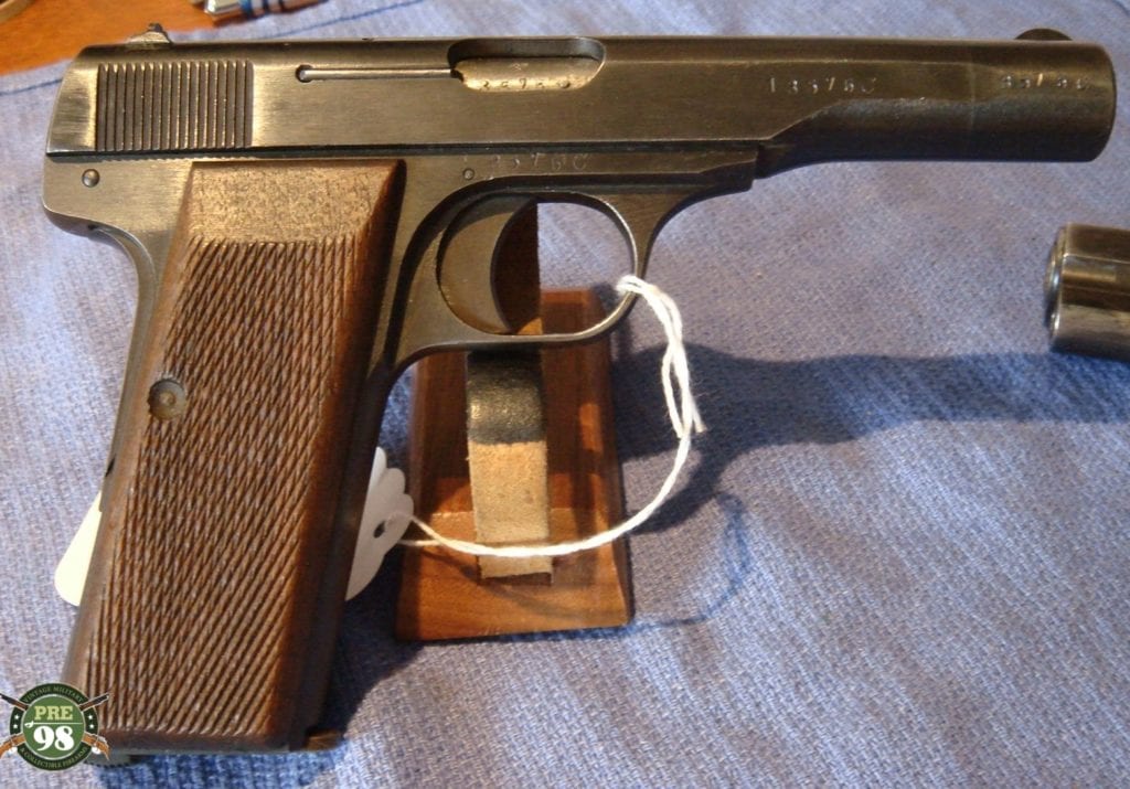 In 97% original condition, we have a nice late C block production FN 1922 pistol in 7.65m/m. The gun is all matching with a mint bore. This is probably the most commonly encountered German WW2 pocket pistol. They were heavily used by Luftwaffe aircrew. While this is a common gun, the condition is much nicer than you will usually see.