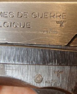 THIS IS A REALLY NICE VET BROUGHT BACK RIG, AND IS PERFECT FOR A REINACTMENT OF THE BATTLE OF THE BULGE. IN 95% CONDITION WE HAVE A NICE SOLID MID WAR PRODUCTION B BLOCK FN MADE HIGH POWER WITH A NICE DLA 43 HOLSTER AND A VERY HARD TO FIND AND HIGHLY SOUGHT AFTER SPARE MAG. THIS IS A NICE ALL MATCHING PISTOL WITH A NICE BORE AND GREAT LOOKS. ONE BIG PLUS WITH THIS SET-UP IS THAT YOU WILL NOT HAVE TO GO RUNNNING AROUND TRYING TO GET THAT SECOND MAG. EVERYBODY WHO COLLECTS WW2 PISTOLS SHOULD HAVE ONE OR 2 OF THESE IN THEIR COLLECTION, THEY WERE HIHGLY SOUGHT AFTER BY THE SOLDIERS BECAUSE THEY HAD DOUBLE THE AMMO LOAD OF ANY OTHER GUN AND THEY WERE UTTERLY DEPENDABLE WEAPONS.