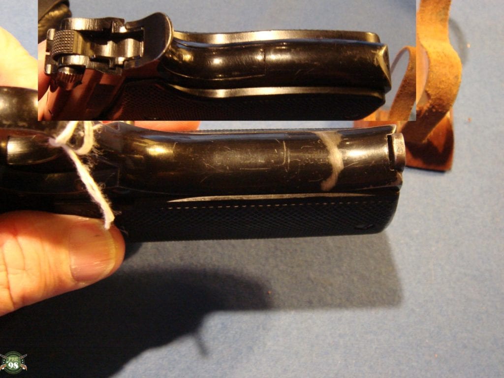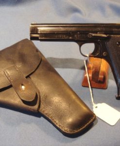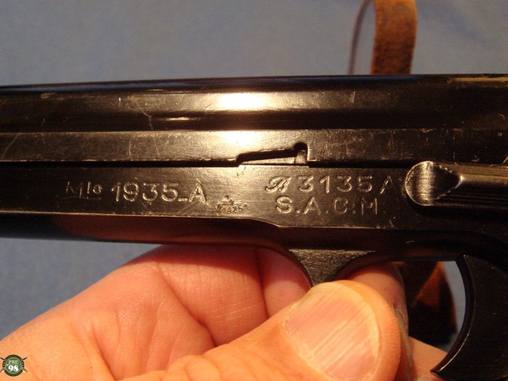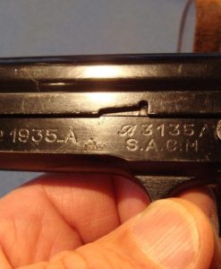 IN 97% ORIGINAL UNMESSED WITH CONDITION, WE HAVE A NICE FRENCH 1935A PISTOL MADE UNDER NAZI OCCUPATION AND WAFFENAMTED WAA251, WHICH IS THE EARLY WAFFEN ON THESE PISTOLS. THE PISTOL IS ALL MATCHING WITH AN EXCELLENT BORE. THE FINISH IS PHOPHATE WITH A BLACK PAINT COATING. THE PISTOLS USED A LONG .32 CARTRIDGE WHICH WAS ALSO USED IN THE FRENCH SUB MACHINGUNS. THIS IS THE SAME CARTRIDGE THAT THE US WW2 PEDERSON DEVICE WAS CHAMBERED IN. IT IS SOMEWHAT MORE POWERFULL THAN THE .32 AUTO, BUT NOT AS LETHAL AS A 9MM.