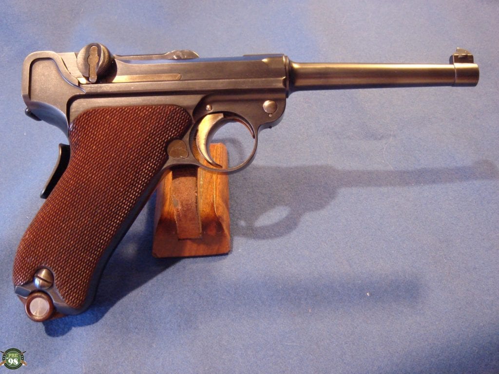 IN 98% VERY CRISP CONDITION WE HAVER A RARELY SEEN EARLY WIDE TRIGGER 1900 SWISS LUGER. THIS IS ONE OF THE FIRST LUGERS USED BY THE SWISS ARMY. LESS THAN 1000 HAVE THE EARLY WIDE TRIGGER MAKING THIS A HIGHLY SOUGHT AFTER PIECE. THE PISTOL HAS A 1933 RELEASE DATE FROM THE SWISS ARMY SO IT WAS OUT OF SERVICE MAY YEARS BEFORE THE START OF WW2. SWISS LUGERS ARE HIGHLY REGARDED AMONGST THE LUGER COLLECTING FRATERNITY AND THIS IS ONE OF THE MOST SOUGHT AFTER VARIANTS.