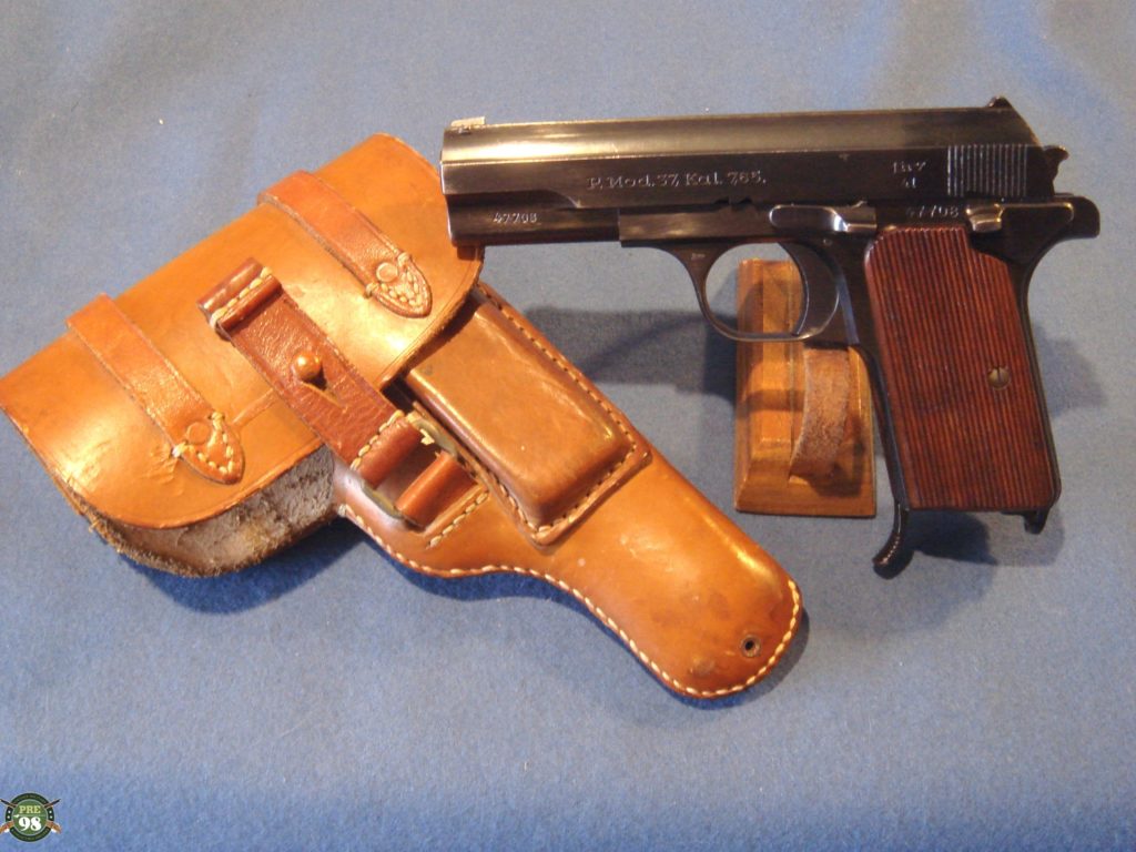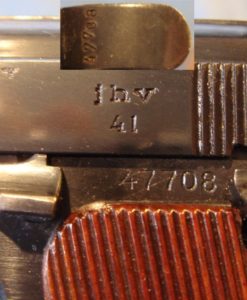 IN 98% ORIGINAL UNMESSED WITH CONDITION, WE HAVE A VERY CRISP EXAMPLE OF THE POPULAR LUFTWAFFE ISSUED FEMARU PISTOL. THIS IS A 1941 CONTRACT GUN ALL MATCHING WITH THE ORIGINAL MATCHING MAG AND THE ORIBINAL VET BROUGHT BACK HOLSTER. THE BORE IS MINT. THE GRIPS ARE QUITE NICE. FEMARUS HAVE BEEN VERY HOT GUNS FOR THE PAST YEAR OR SO AND THE DEMAND FOR THEM HAS BEEN QUITE STRONG, MANY PEOPLE ARE LOOKING FOR THEM AND THIS IS A VERY TOP EXAMPLE AND YOU DON’T EVEN HAVE TO BUY THE HOLSTER FROM THAT GUY ON EBAY!