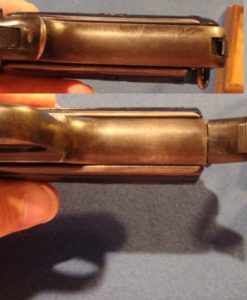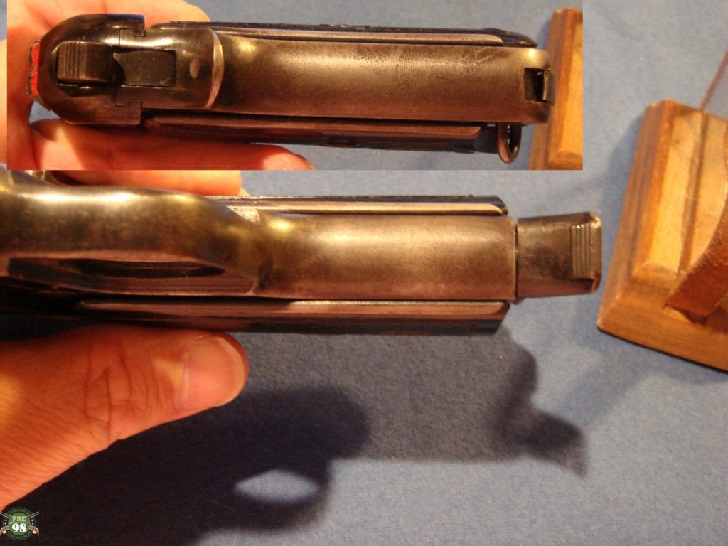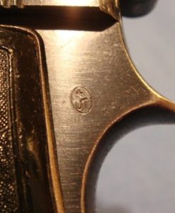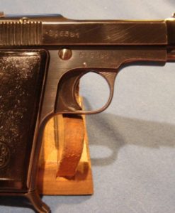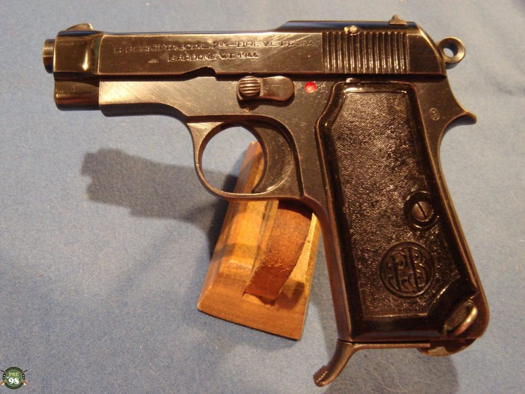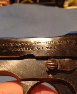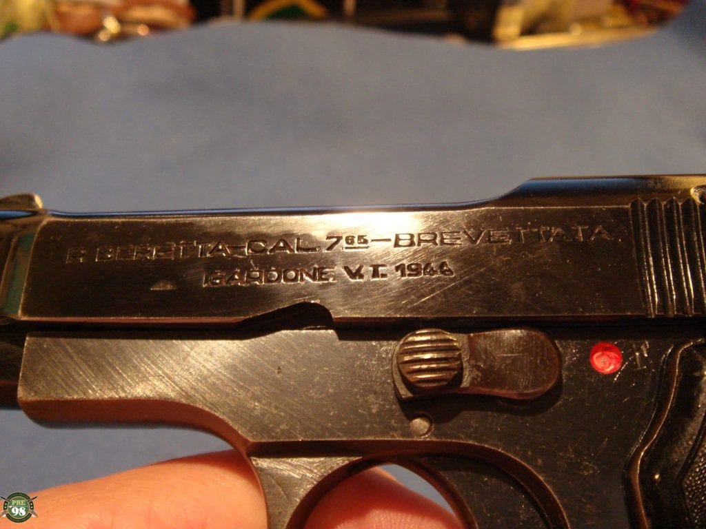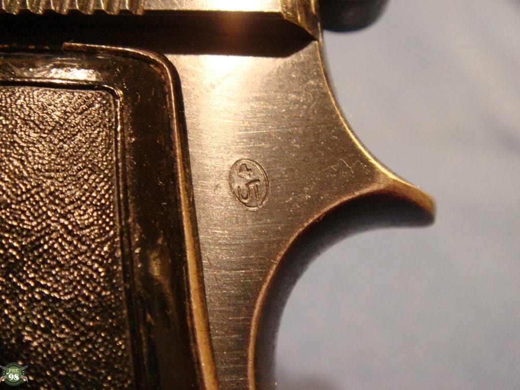 IN 95% ORIGINAL CONDITION, WE HAVE A RARE 1935 BERETTA PISTOL WITH THE GERMAN 4UT ACCEPTANCE STAMP. THE 4UT MARK ON THE TANG WAS THE INPECTION MARK O FTHE GERMAN INSPECTOR AT THE BERETTA FACTORY. UNLIKE THE ITALIAN ARMY PISTOLS WHICH WERE IN .380 THE GERMANS PREFERED THE .32. THIS IS AN BLUED GUN AND ONE OF THE FIRST BERETTA’S TAKEN INTO GERMAN SERVICE. AS YOU KNOW ALMOST ALL OF THESE THAT YOU SEE WERE PHOSPHATE FINISHED. IF YOU COLLECT BERETTAS OR GERMAN PISTOLS THIS IS A GREAT FIND. NOT YOUR TYPICAL MADE FOR THE GERMANS ALL PHOSPHATE GUN.