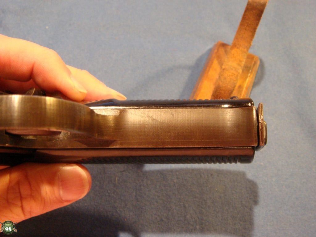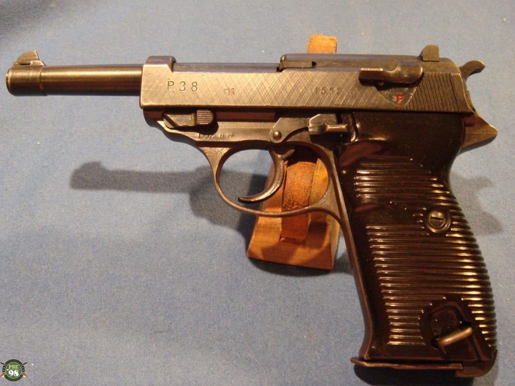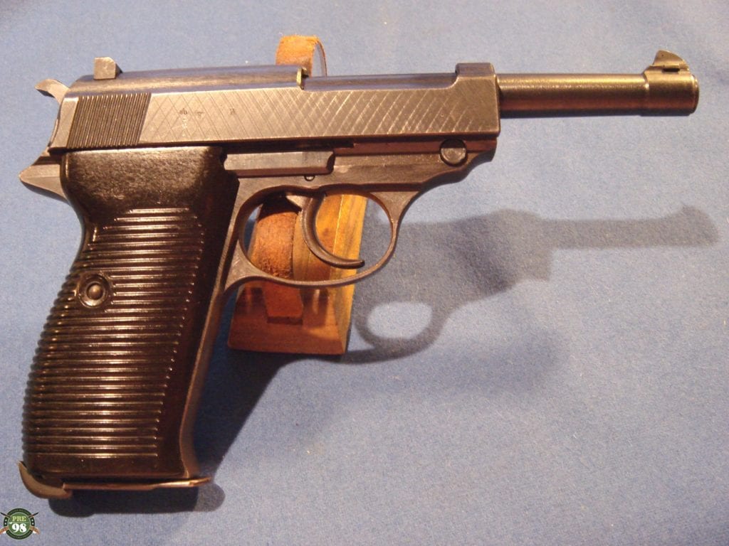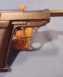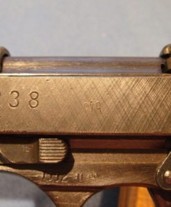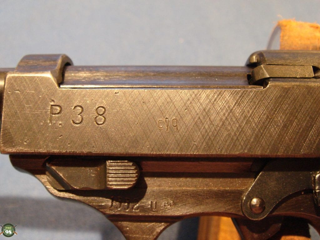 IN 96% EXCELLENT CONDITION WE HAVE A VERY DECENT EXAMPLE OF A SPREEWERKE MADE P38. THIS ONE WILL DRIVE CYQ COLLECTORS WILD BECAUSE IT IS HEAVILY CROSSHATCHED ON BOTH SIDES. LONG THE READ-HEADED STEP CHILD OF P38’S THESE PISTOLS ARE GETTING HOT DUE TO THE INCREASED INTEREST BASED ON THE NEW BOOK ON THEM. LONG THOUGHT BY MOST FOLKS TO HAVE BEEN MADE NEAR BERLIN, I GUESS WE ALL KNOW NOW THAT THEY WERE MADE IN THE SUDATENLAND OF WHAT IS NOW THE CZECH REPUBLIC. THIS IS AN ALL MATCHING U BLOCK PISTOL, SO IT IS A FAIRLY LATE GUN. THIS GUN IS A GREAT EXAMPLE AND COULD BE THE POSTERCHILD OF SPREEWERKE MADE GUNS.