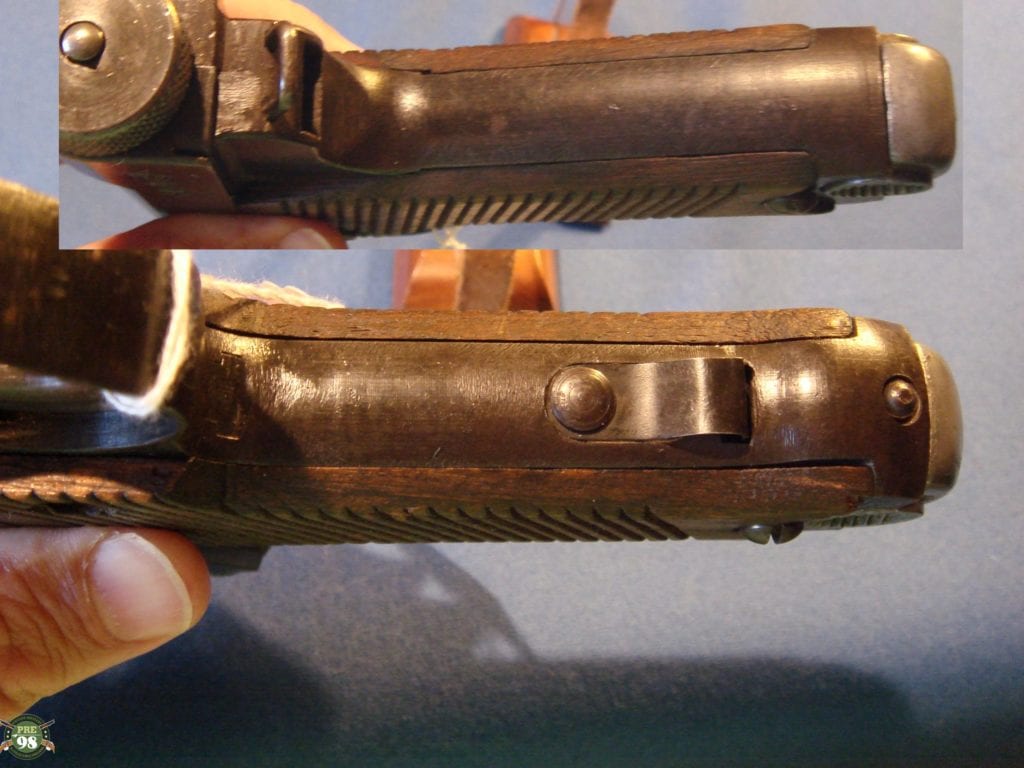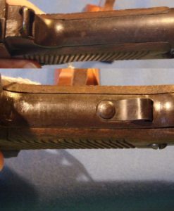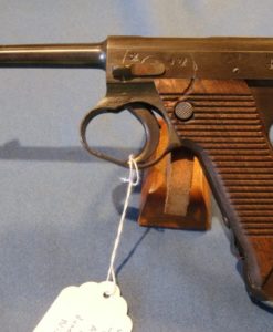 IN 99% CONDITION, ALL MATCHING INCLUDING THE MAGAZINE, WE HAVE A VERY DESIRABLE TYPE 14 NAMBU. THIS IS A MINT CRISP JUNE 1944 EXAMPLE. THE PISTOL WAS ONE OF TWO THAT WERE LOOTED OUT OF A DEPOT IN A CAVE OR BUNKER ON TRUK IN 1945, SO IT BASCIALLY CAME RIGHT OUT OF A CRATE. THIS PISTOL WAS WELL CARED FOR AND STILL LOOKS LIKE NEW. IF YOU COLLECT NAMBUS THIS IS A SUPER CRISP EXAMPLE OF A LARE WAR PRODUCTION PISTOL.