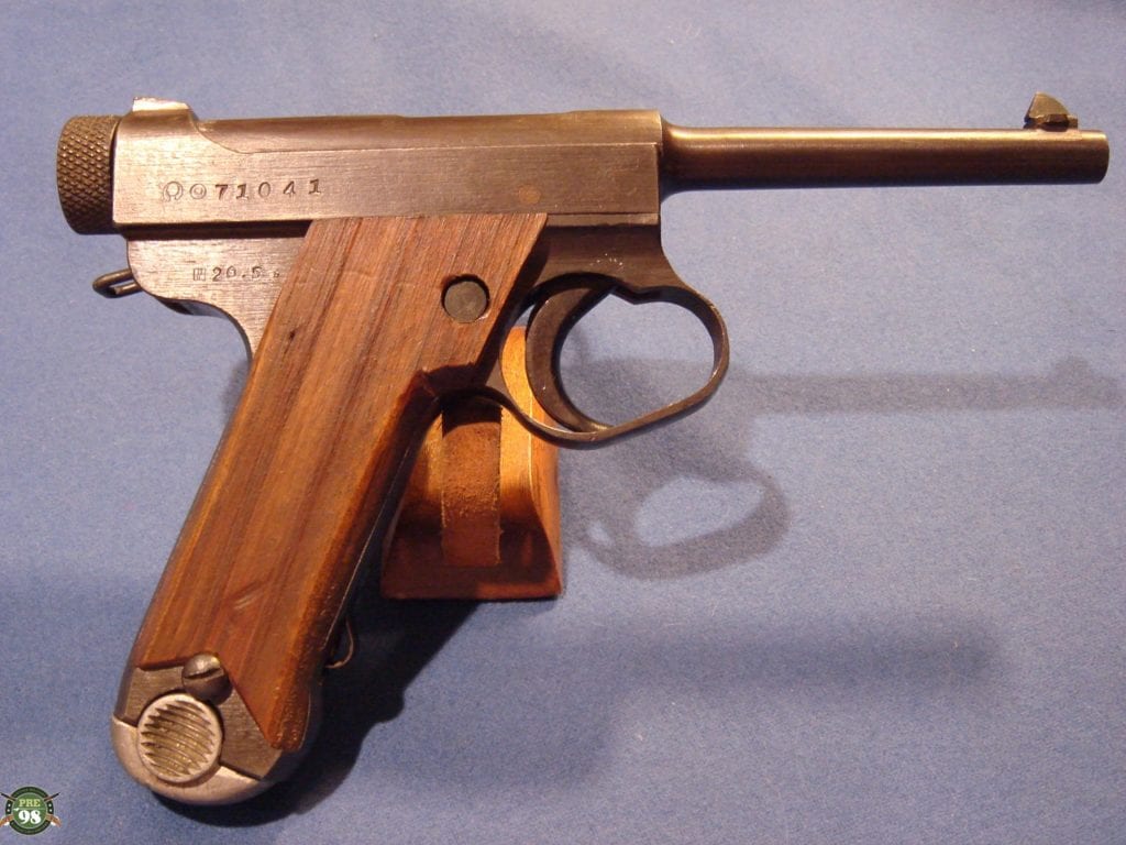 IN 98% CONDITION, ALL MATCHING INCLUDING THE MAGAZINE, WE HAVE A VERY DESIRABLE TYPE 14 NAMBU. THIS IS A MINT CRISP VERY LATE WAR MAY 1945 PRODUCTION EXAMPLE. THIS IS A VERY NICE END OF THE WAR PRODUCTION NAMBU IF YOU COLLECT NAMBUS THIS IS A SUPER CRISP EXAMPLE OF A LAST DITCH PRODUCTION PISTOL.
