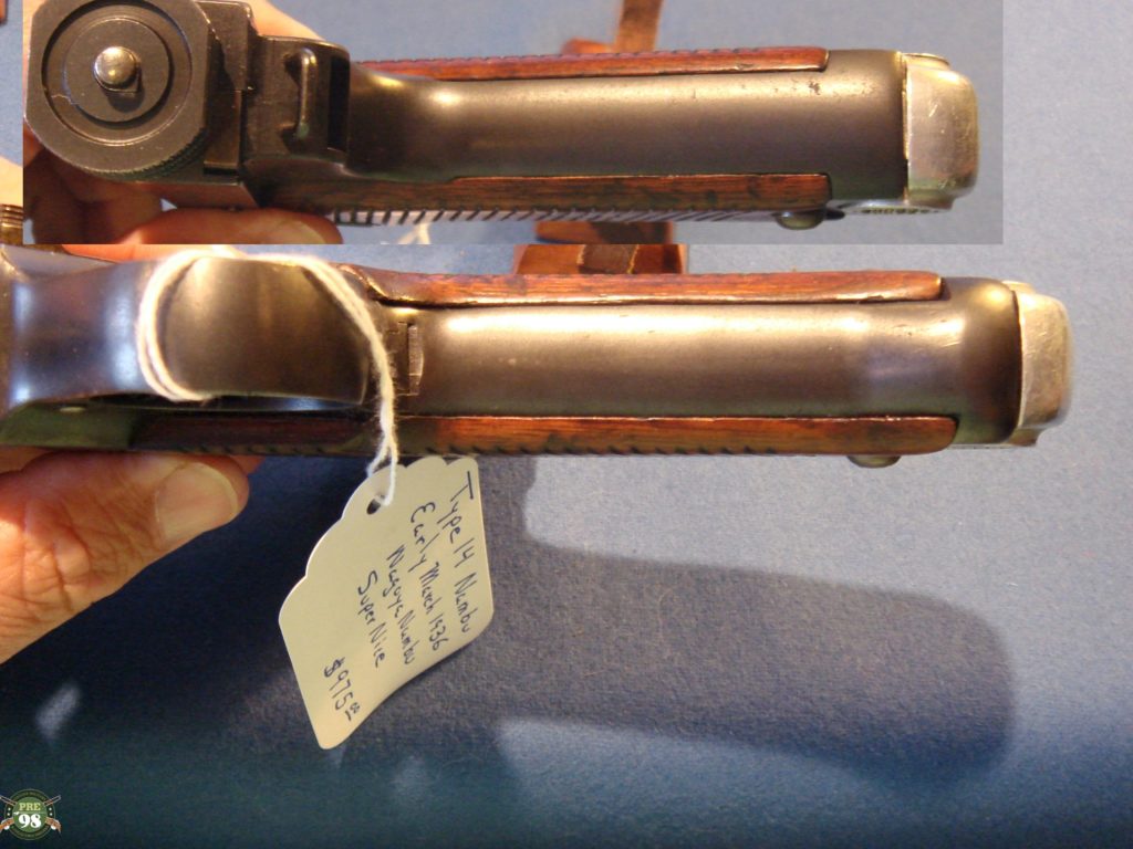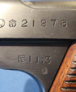IN 98% BEAUTIFUL CONDITION, ALL MATCHING EXCEPT THE MAG, AND WITH AN EXCELLENT BORE, WE HAVE A TYPE 14 NAMBU THAT WAS MANUFACTURED IN MARCH 1936. THIS IS ONE OF THE PRETTIEST NAMBUE THAT WE HAVE SEEN THE BLUE IS QUITE STUNNING. THIS IS A GREAT EXAMPLE OF A HARD TO FIND SMALL TRIGGERGUARD PISTOL. IF YOU ARE LOOKING FOR A NICE SMALL TRIGGERGUARD YOU COULD HARDLY GO WRONG WITH THIS PISTOL.