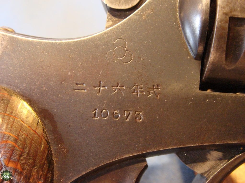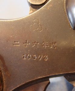 IN 96% ORIGINAL CONDITION WE HAVE A VERY NICE EXAMPLE OF A JAPANESE TYPE 26 REVOLVER. THESE REVOLVERS WENT INTO SERVICE IN 1892 AND STAYED IN SERVICE UNTIL 1945. IT WAS THE REVOLVER THAT WAS CARRIED IN THE RUSSO JAPANESE WAR AND IT WAS STILL CARRIED IN WW2. ALMOST ALL OF THESE THAT YOU SEE LOOK PRETTY BEAT UP BUT THIS IS A VERY NICE EXAMPLE AND IS A MUST HAVE FOR ANY JAPANESE PISTOL COLLECTION. THIS IS MUCH NICER THAT YOU USUALLY SEE THESE GUNS.