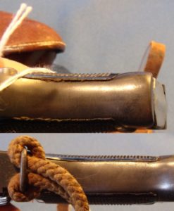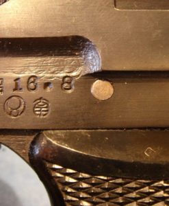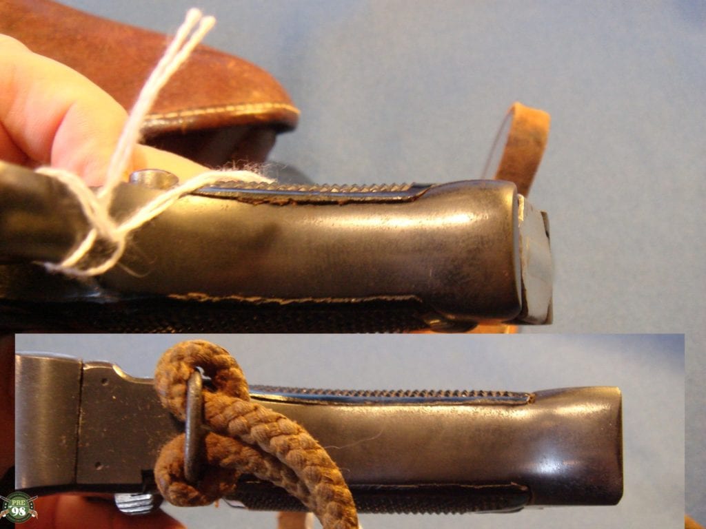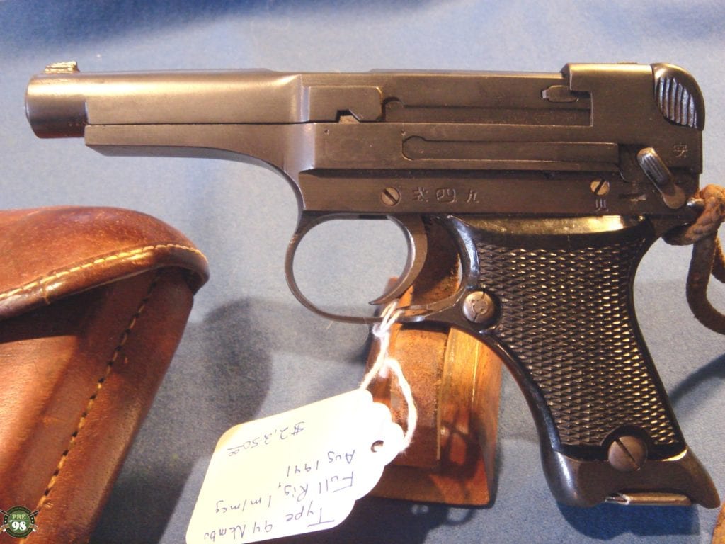 IN 98% ORIGINAL CONDITION WE HAVE NICE EXAMPLE OF A A PRE WW2, AUGUST 1941 PRODUCTION TYPE 94 NAMBU WITH ONE MATCHING MAG AND THE FULL RIG INCLUDING THE VERY HARD TO FIND AND EXPENSIVE LANYARD AND EARLY CLEANING ROD, THE HOLSTER WITH SHOULDER STRAP AND A VERY EARLY MAG. THIS IS AN INSTANCE OF THE PARTS BEING WORTH MORE THAN THE GUN. IT ALL LOOKED SO NICE TOGETHER I THOUGHT PERHAPS SOMEBODY WOULD WANT TO MAN UP AND BUY THE WHOLE SHOOTIN MATCH. THIS IS AVERY PRETTY GUN AND WOULD BE ALL THE TYPE 94 YOU WOULD EVER WANT TO OWN. THIS IS A REALLY NICE SET UP.
