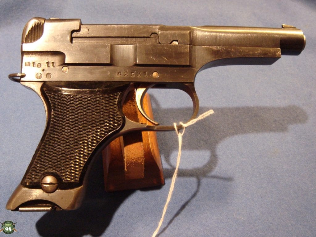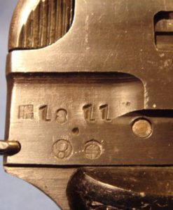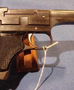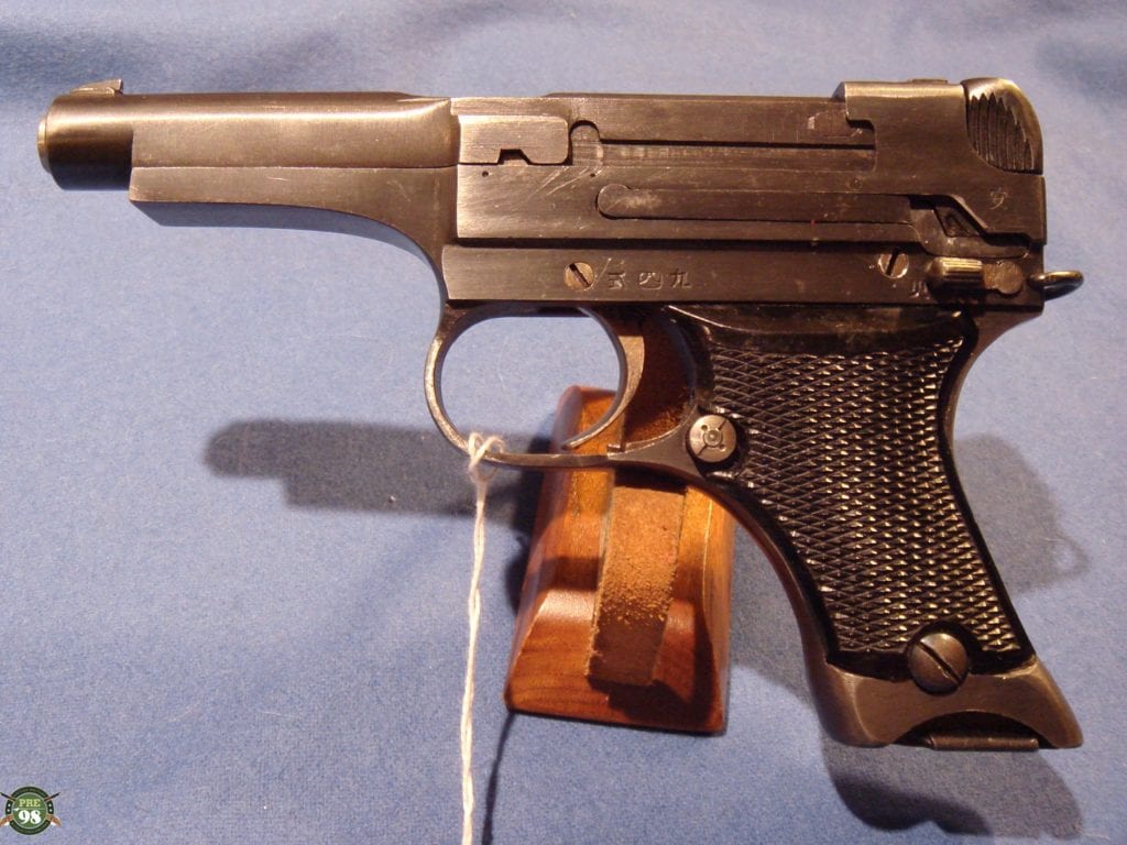 IN 97% ORIGINAL CONDITION WE HAVE NICE EXAMPLE OF A MID WAR TYPE 94 NAMBU. ALL MATCHING EXCEPT FOR THE MAG WITH AN EXCELLENT BORE. THIS IS A GREAT TYPE SPECIMAN IF YOU NEED JUST ONE OF THESE. PLEASE KEEP IN MIND THAT THIS IS A MUCH SCARCER GUN THAN THE TYPE 14 AND ALOT OF PEOPLE ARE REALLY GETTING INTERESTED IN THESE PISTOLS.
