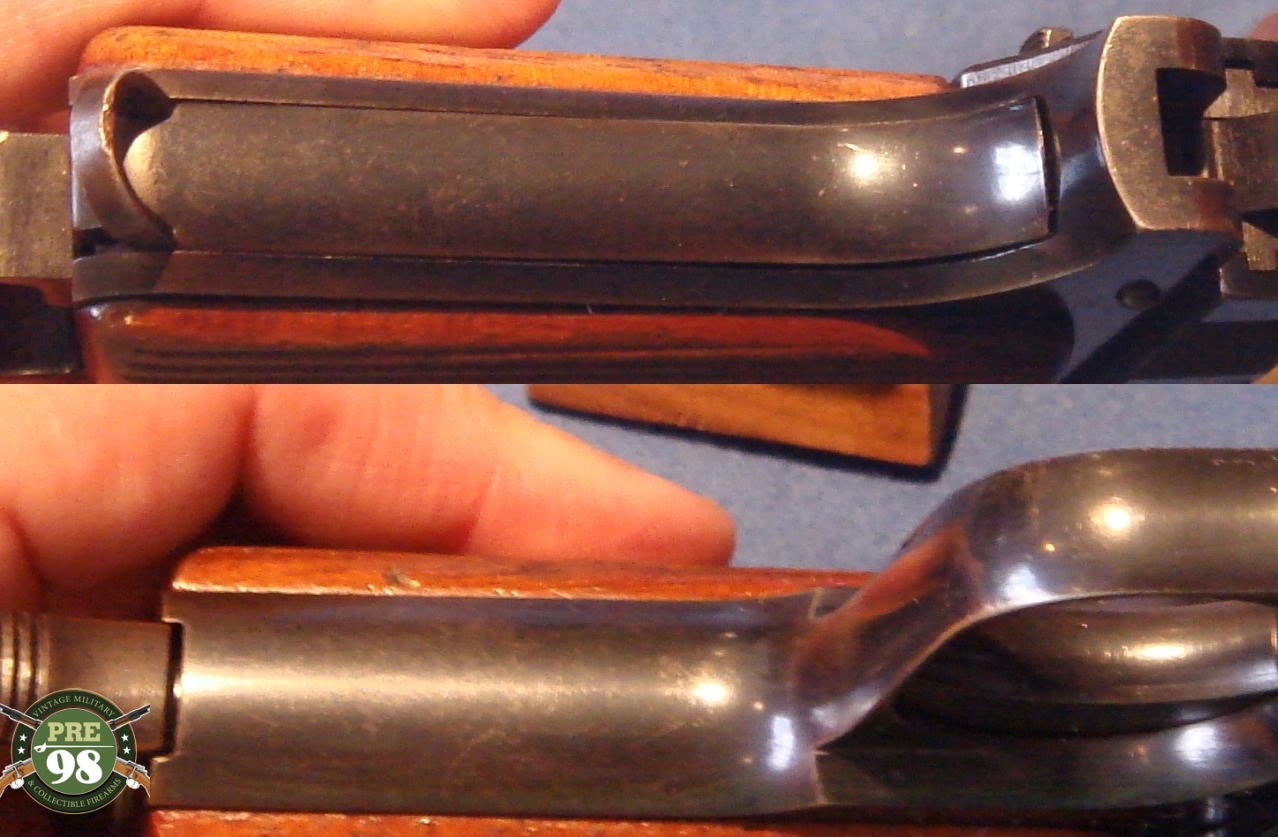 IN 98% ORIGINAL UNMESSED WITH CONDITION, WE HAVE A VERY CRISP EXAMPLE OF THE POPULAR LUFTWAFFE ISSUED FEMARU PISTOL. THIS IS A 1941 CONTRACT GUN ALL MATCHING WITH THE ORIGINAL MATCHING MAG. THE BORE IS MINT. THE GRIPS ARE QUITE NICE. FEMARUS HAVE BEEN VERY HOT GUNS FOR THE PAST YEAR OR SO AND THE DEMAND FOR THEM HAS BEEN QUITE STRONG, MANY PEOPLE ARE LOOKING FOR THEM AND THIS IS A VERY TOP EXAMPLE. PERFECT TO STICK IN THOSE EXTREMELY DESIRABLE AND FLASHY TROPICAL CANVAS AND LEATHER LUFTWAFFE HOLSTERS.