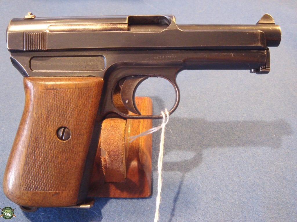 IN 95% ORIGINAL CONDITION, WE HAVE A VERY HARD TO FIND EARLY PRODUCTION, IMPERIAL PROOFED MAUSER 1914 PISTOL WITH A GERMAN WW1 HOLSTER AND EXTRA MAG. THIS WAS THE MOST COMMONLY USED 7,65 PISTOL BY THE GERMANS DURING WW1. THIS IS A NICE EXAMPLE AND THEY ARE VERY HARD TO LOCATE THIS NICE. WW1 PISTOLS ARE VERY POPULAR WITH COLLECTORS THESE DAYS AND THIS IS A VERY NICE EXAMPLE.