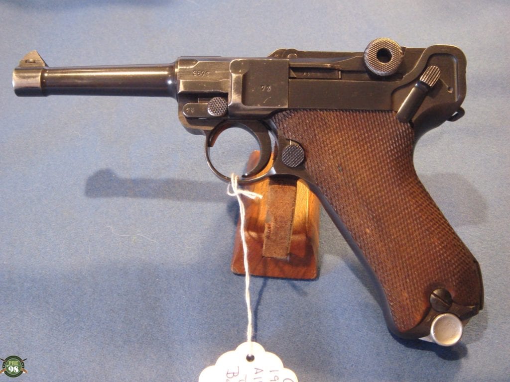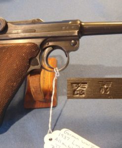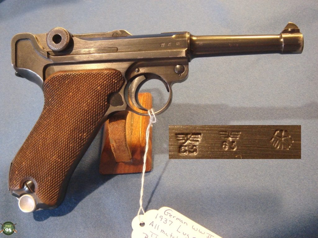 IN 96% ORIGINAL FINISH, ALL MATCHING INCLUDING THE MAG, WE HAVE A NICE LATE 1937 PRODUCTION LUGER. THIS HAS AN EXCELLENT BORE,AND IS A NICE EXAMPLE OF THE FIRST OF THE HOT SALT BLUED LUGERS. FAIRLY EARLY INTO 1937 THE HOT SALT BLUE FINISH WAS INTRODUCED AND MOST OF THAT YEARS PRODUCTION WAS ALL BLUE. THIS PISTOL IS TOTALLY MATCHING TO INCLUDE THE NUMBERED GRIPS. THIS IS A FRESH OUT OF THE WOODWORK VET BRINGBACK PISTOL AND I DO NOT THINK THAT IT HAS SEEN THE LIGHT OF DAY IN A VERY LONG TIME. IF YOU ARE LOOKING FOR A REALLY DECENT EXAMPLE OF A GERMAN ARMY WW2 LUGER AND DO NOT WANT TO PAY OVER 2K THEN THIS IS A REALLY GREAT PIECE TO LOOK AT. WE HAVE PRICED IT AT A PRICE THAT IS A TRUE BARGAIN AND A GREAT VALUE TO THE COLLECTOR.
