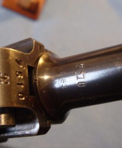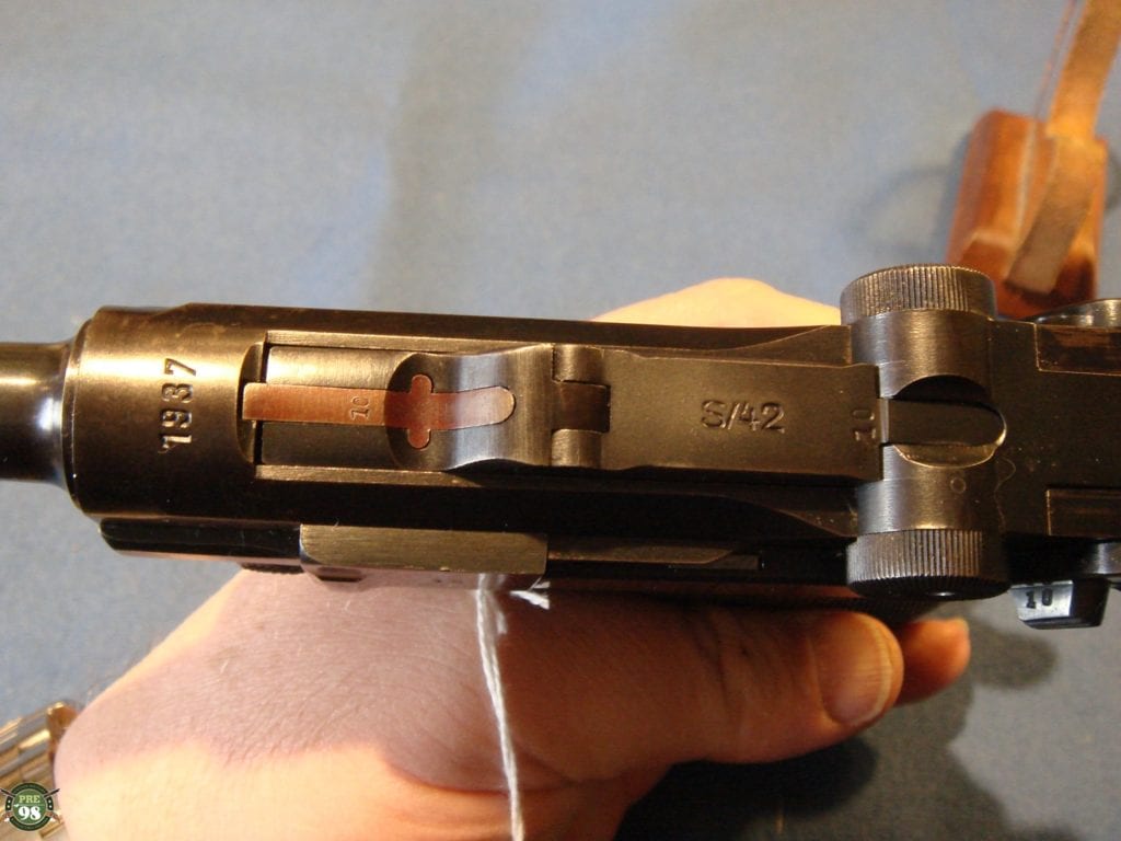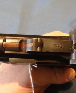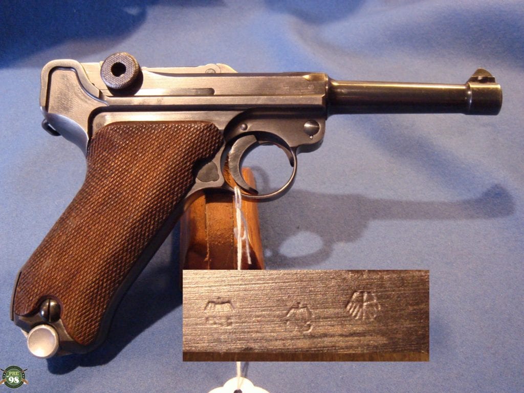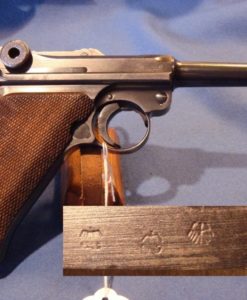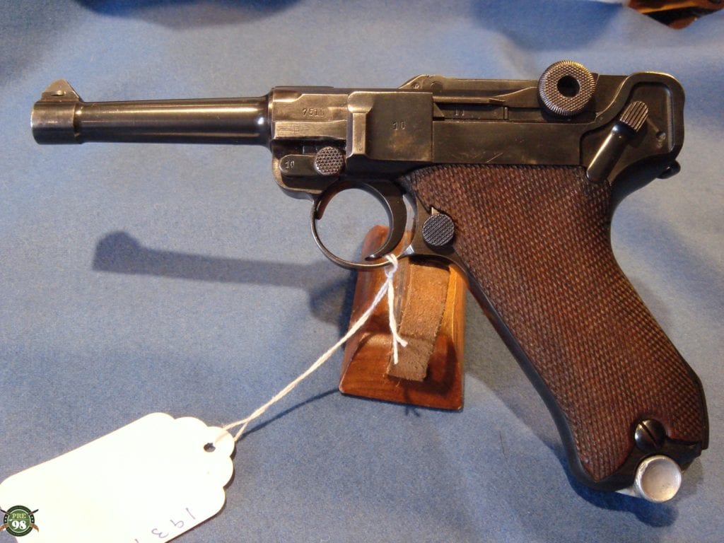 IN 95% ORIGINAL FINISH, ALL MATCHING EXCEPT THE MAG, WITH AN EXCELLENT BORE,WE HAVE A NICE EXAMPLE OF THE FIRST OF THE HOT SALT BLUED LUGERS. FAIRLY EARLY INTO 1937 THE HOT SALT BLUE FINISH WAS INTRODUCED AND MOST OF THAT YEARS PRODUCTION WAS ALL BLUE. THIS IS A NICE EXAMPLE OF A MIDDLE PRODUCTIOIN X BLOCK GUN. EXCEPT FOR THE MAG THIS PISTOL IS TOTALLY MATCHING TO INCLUDE THE NUMBERED GRIPS. THIS IS A FRESH OUT OF THE WOODWORK VET BRINGBACK PISTOL AND I DO NOT THINK THAT IT HAS SEEN THE LIGHT OF DAY IN A VERY LONG TIME. IF YOU ARE LOOKING FOR A REALLY DECENT EXAMPLE OF A GERMAN ARMY WW2 LUGER AND DO NOT WANT TO PAY OVER 2K THEN THIS IS A REALLY GREAT PIECE TO LOOK AT. WE HAVE PRICED IT AT A PRICE THAT IS A TRUE BARGAIN AND A GREAT VALUE TO THE COLLECTOR.