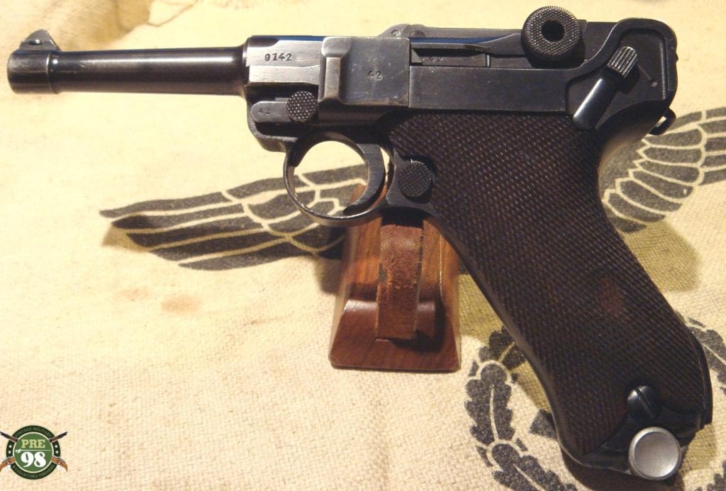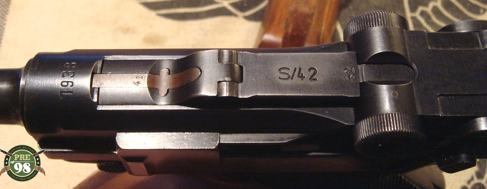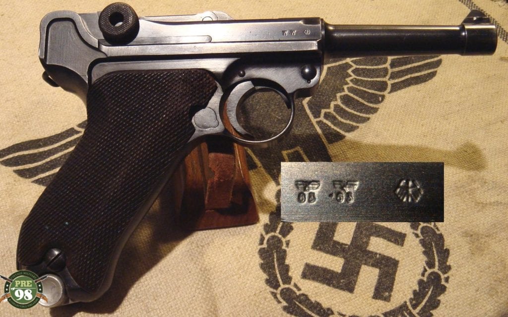 IN 97% ORIGINAL CONDITION, ALL MATCHING EXCEPT FOR THE MAG, WE HAVE A DECENT EXMAPLE OF A 1938 S/43 CODED LUGER. THIS IS A NICE EXAMPLE OF THE CLASSIC PRE-WAR NAZI LUGER, WHEN THEY WERE RAMPING UP PRODUCTION FOR THE COMING WAR. THIS IS A NICE LOOKING LUGER WITH AN EXCELLENT BORE. ALTHOUGH THE MAG DOES NOT MATCH, IT IS VERY CLOSE AND WAS PROBABLY MIXED UP IN THE FIELD. THIS IS A REALLY CLEAN GUN AND A GREAT EXAMPLE OF A NAZI LUGER.