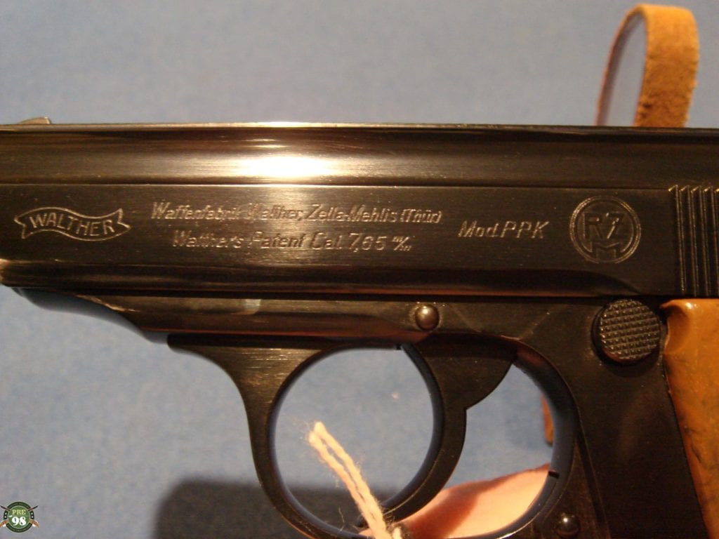 IN 97% PROFESSIONALY RESTORED CONDITION WE HAVE A GREAT EXAMPLE OF A WALTHER RZM MARKED PPK. OF COURSE ALL MATHCHING AND WITH A MINT BORE WHAT MAKES THIS SO GREAT IS THAT THE RZM ETCHING IS VERY DEEP AND VERY CLEAR AND SHARP MUCH, MUCH BETTER THAN YOU USUALLY SEE. THE PRICE OF THIS PISTOL IS A REALLY GOOD DEAL AS WELL, ESPECIALLY WHEN YOU CONSIDER THAT THIS PISTOL HAS THE FINGEREST MAG AND I HAVE BEEN SELLLING A LOT OF THESE MAGS AT $380 A SHOT. THIS IS A VERY DECENT EXAMPLE OF AN RZM MARKED PPK AT A VERY ATTRACTIVE PRICE.